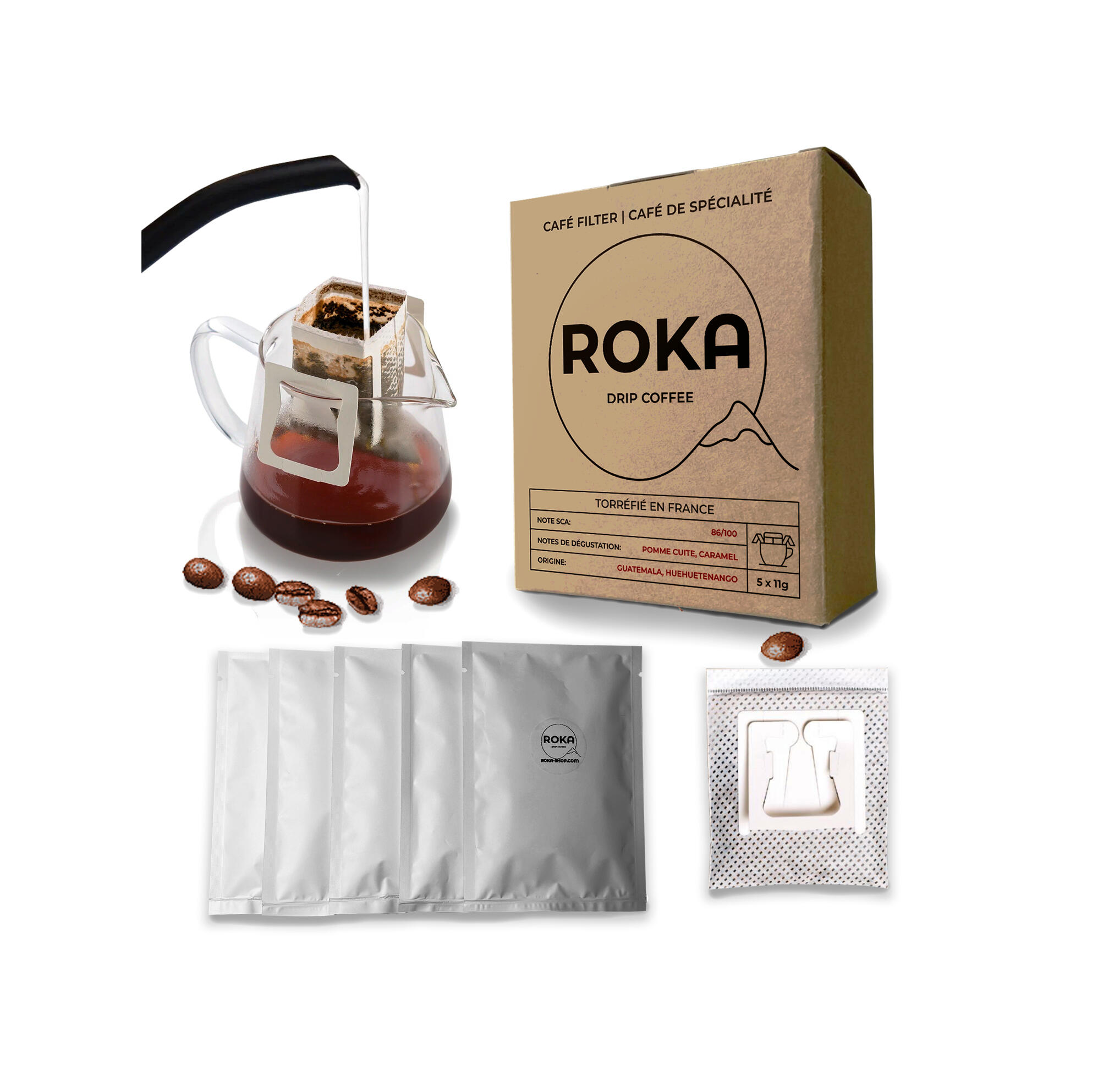 5 drip bags ROKA, prêt à emporter.